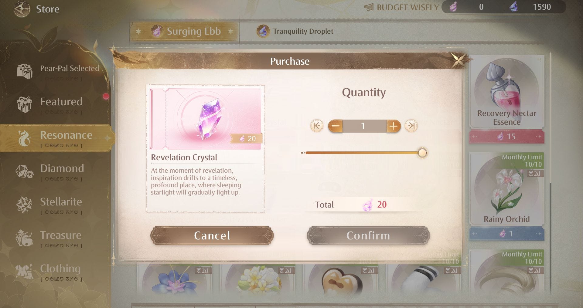 - Save your Revelation Crystals - Revelation Crystals are the main currency you'll use to pull on limited-time banners and are much harder to find compared to their permanent banner counterpart, Resonite Crystals. Thanks to this, we recommend saving them for a limited-time Outfit you truly want rather than just using them straight away. (It might also save you some real world money as well…)